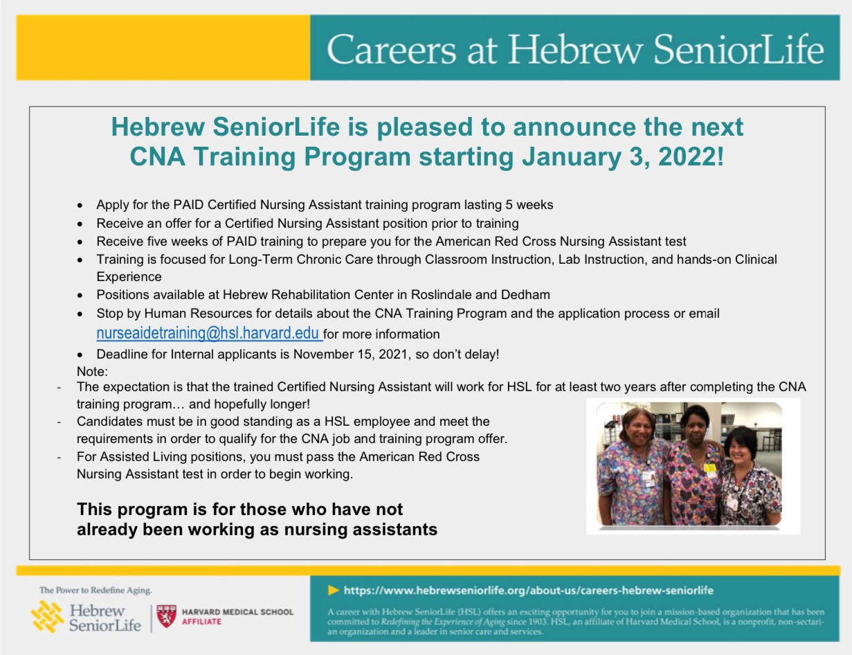 Hebrew Seniorlife On Twitter We Re Very Happy To Announce That Hebrew Rehabilitation Center Is Offering The Certified Nursing Assistant Cna Training Program Again In 2022 This Program Is For Those Employees And